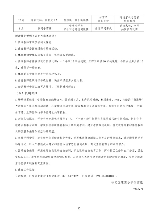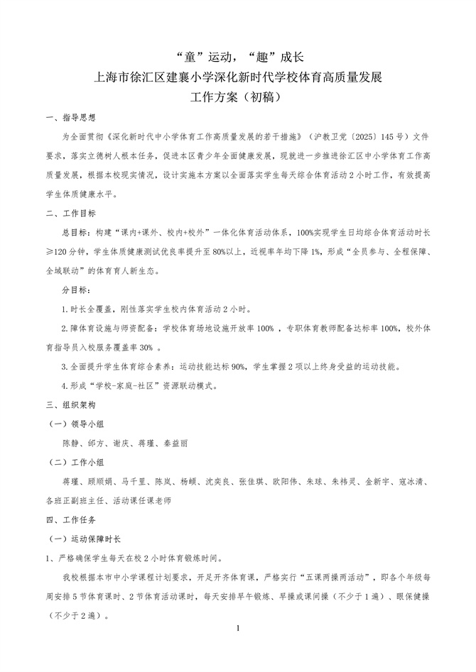 “童”运动,“趣”成长——上海市徐汇区建襄小学深化新时代学校体育高质量发展工作方案(初稿)