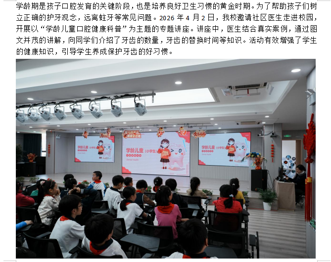 天平医生进校园——学龄儿童口腔健康科普