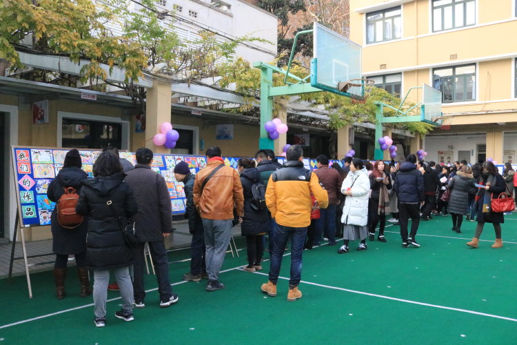 襄园吉祥物“飞飞”早早地就在校门口恭候着小朋友和家长的到来。门口还展示了孩子们认真而又工整的作业本和孩子们奇思妙想的各种作品。家长们看得津津有味。